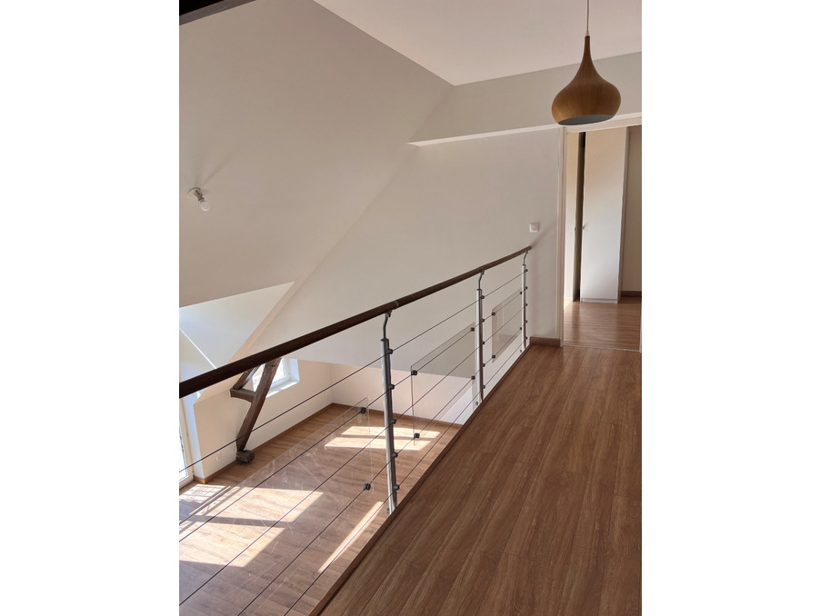 Prestations de qualité - Appartement proche du centre-ville à pied en duplex comprend entrée, cellier, vestiaire, pièce de vie, cuisine équipée avec four, plaque, hotte, réfrigérateur et lave-vaisselle, buanderie, un wc avec placard. A l'étage : un palier desservant 2 chambres dont une avec placard, salle de bain et wc. Disponible de suite.