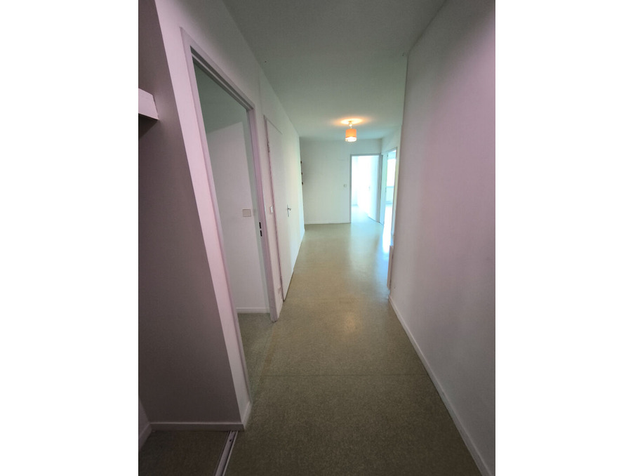 Appartement de 107 m² situé au 2éme étage d'une copropriété avec ascenseur comprenant une grande entrée, un séjour avec une alcôve qui donne une vue sur le centre ville, une cuisine, un couloir qui dessert une salle d'eau et 3 chambres dont une avec une salle d'eau privative.