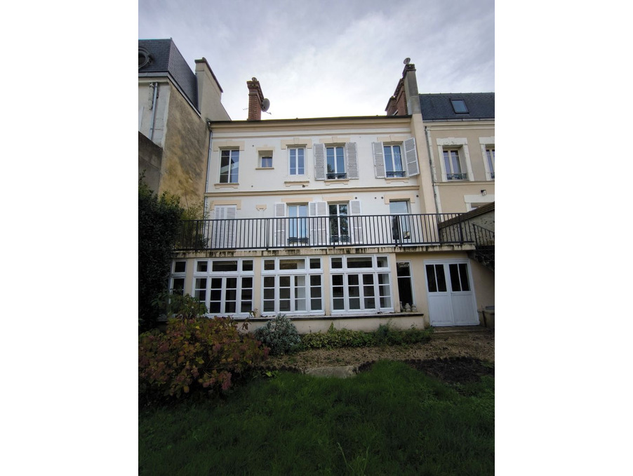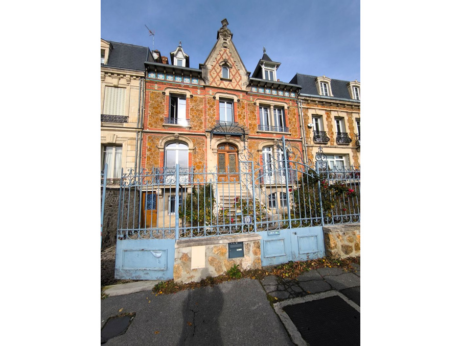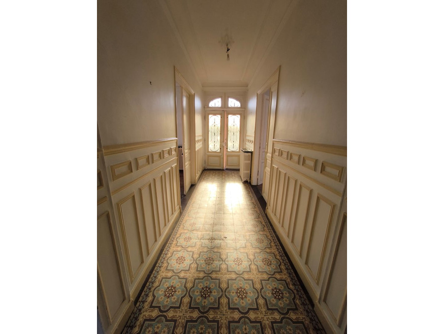 Centre ville. Belle maison bourgeoise d'une surface de 400 m² sur 4 niveaux comprenant en rez de chaussée une première partie habitable qui dessert une entrée avec des carreaux de ciment, une salle à manger avec cheminée, une cuisine meublée avec accès terrasse, un salon parqueté avec cheminée et placards , un couloir, un WC avec lave mains, une chambre, une salle de bains avec baignoire et douche.