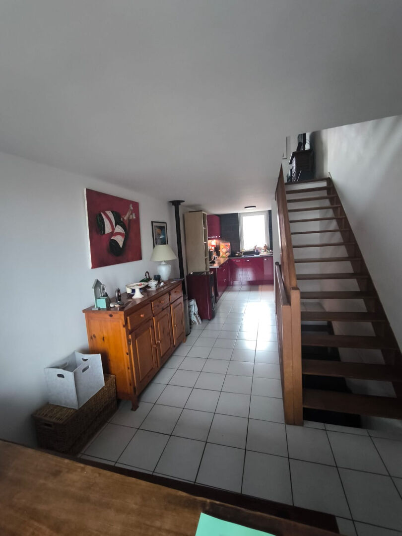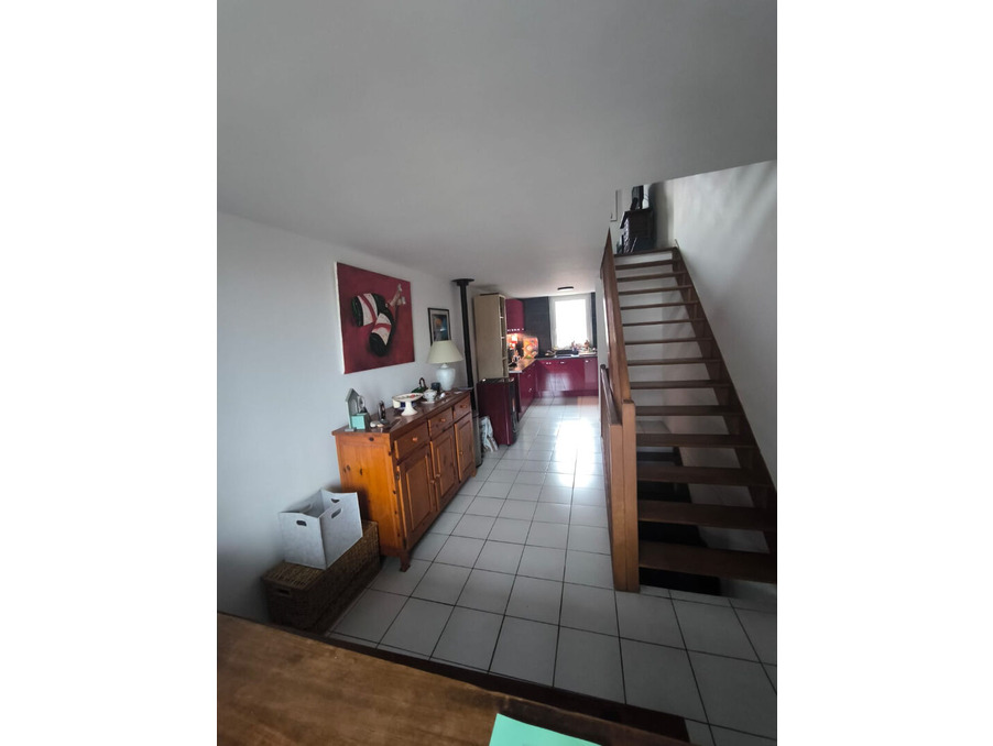 Maison de ville sans travaux d'une surface de 75 m² habitables comprenant en rez de chaussée: une entrée avec placard, une buanderie avec accès cour fermée et un WC. Au 1er étage: une cuisine aménagée avec salle à manger et poêle à granules. Au dessus un salon et un coin bureau. Au dernier étage une chambres et une salle d'eau avec WC. Cave